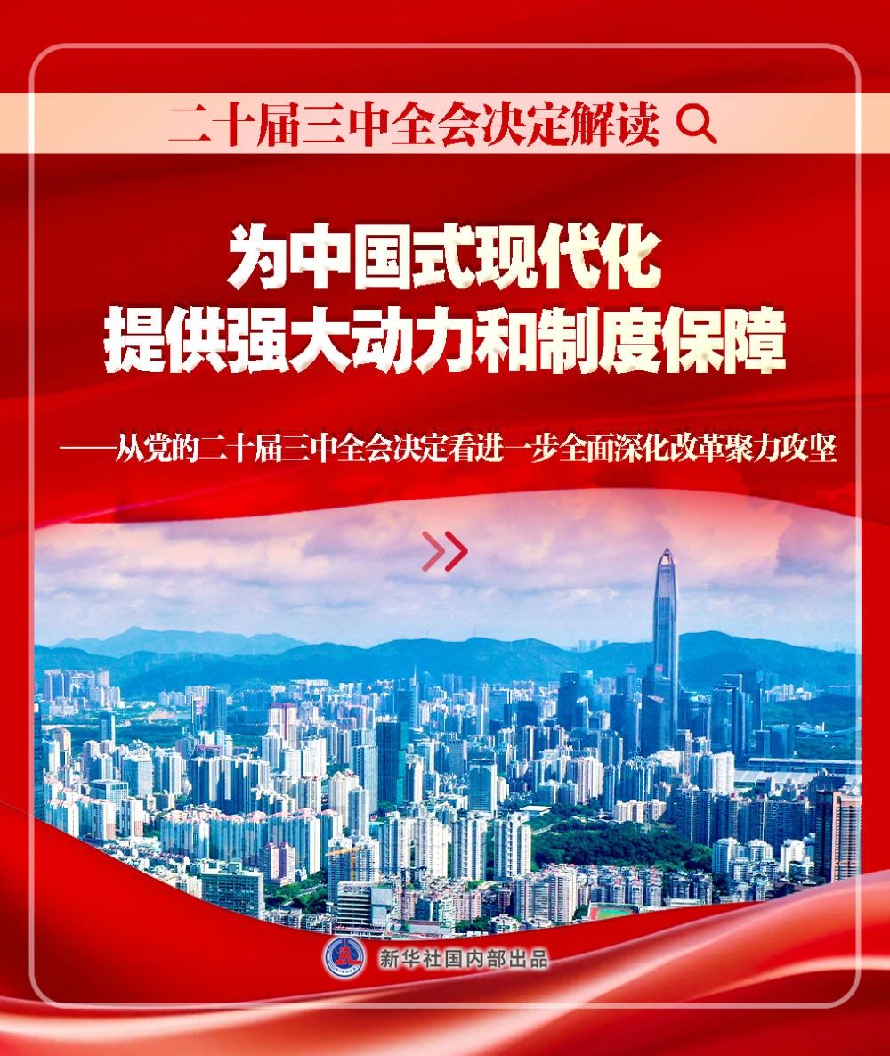 7月21日,《中共中央關(guān)于進(jìn)一步全面深化改革、推進(jìn)中國式現(xiàn)代化的決定》發(fā)布。新華社推出一系列解讀報道,深入闡釋黨的二十屆三中全會決定。..[2024-09-03]